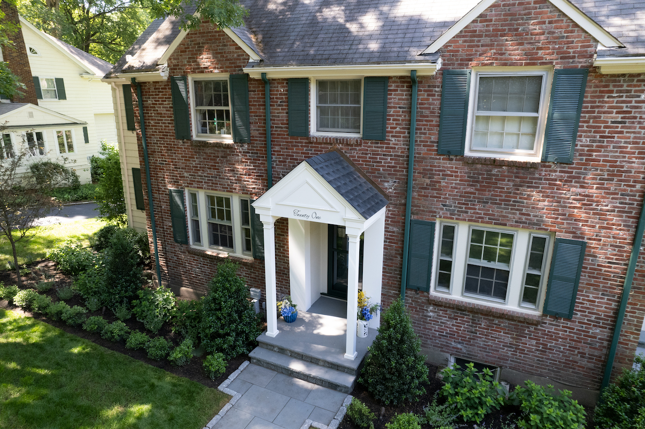 Designed to elevate curb appeal, this front entry renovation transformed an outdated, unwelcoming space into a warm and inviting entrance. An elegant bluestone walkway, accented by a charming cobblestone border, guides visitors to a redesigned main entry. Framed by a striking sterling-gray ashlar staircase and solid bluestone landing, the new portico creates a timeless welcome. Explore the transformation in our gallery!