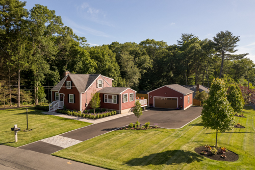 Phase one of the project included site clearing, grading, walkway and patio installation, irrigation, planting, a new driveway featuring a cobblestone apron and cobblestone edging, all capped off with a beautiful new lawn.