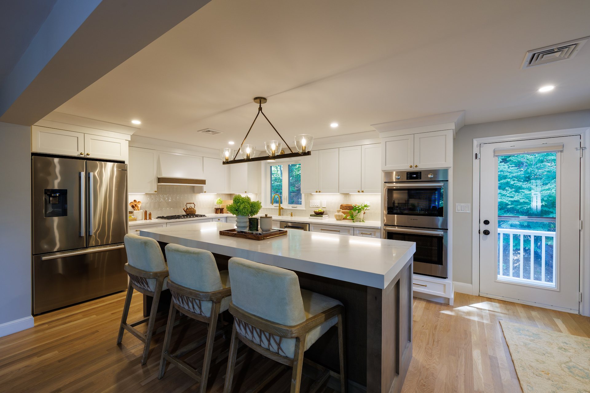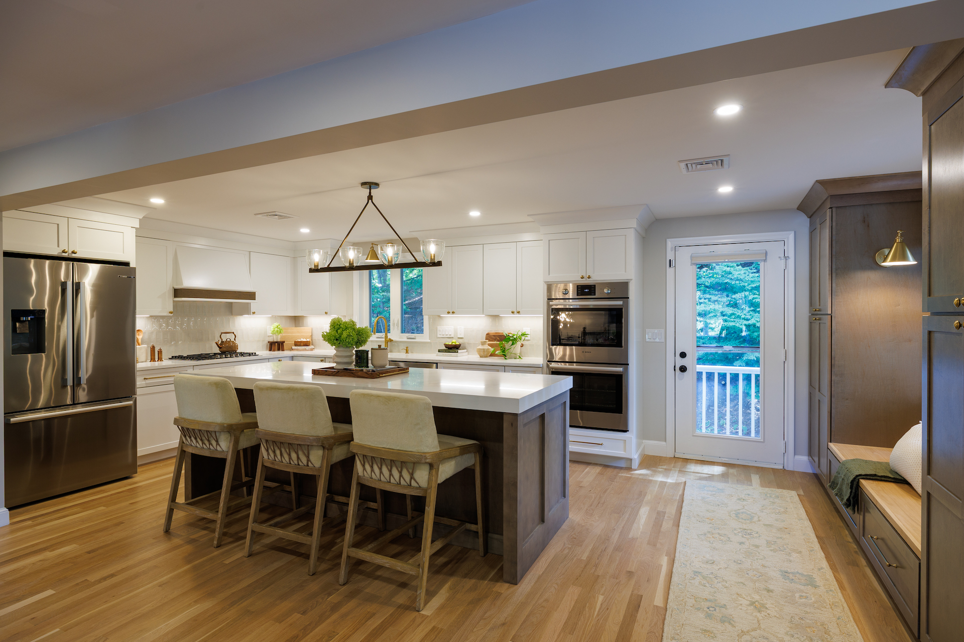 This transformative two-story addition and renovation revitalized a 1974 split-level home in Canton, MA, creating a modern, family-friendly haven. Thoughtfully blending expanded living areas with reimagined existing spaces, the project introduced a spacious kitchen and dining area, a luxurious master suite, and a welcoming guest suite. By adding two full bathrooms and one bedroom, the home evolved from a 3-bed, 2-bath layout to a 4-bed, 4-bath retreat, enhancing both functionality and lasting value.
